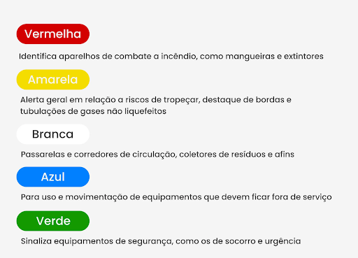 De acordo com esta última, são 12 cores de sinalização no total, abrangendo diversas funções e diferentes setores industriais.